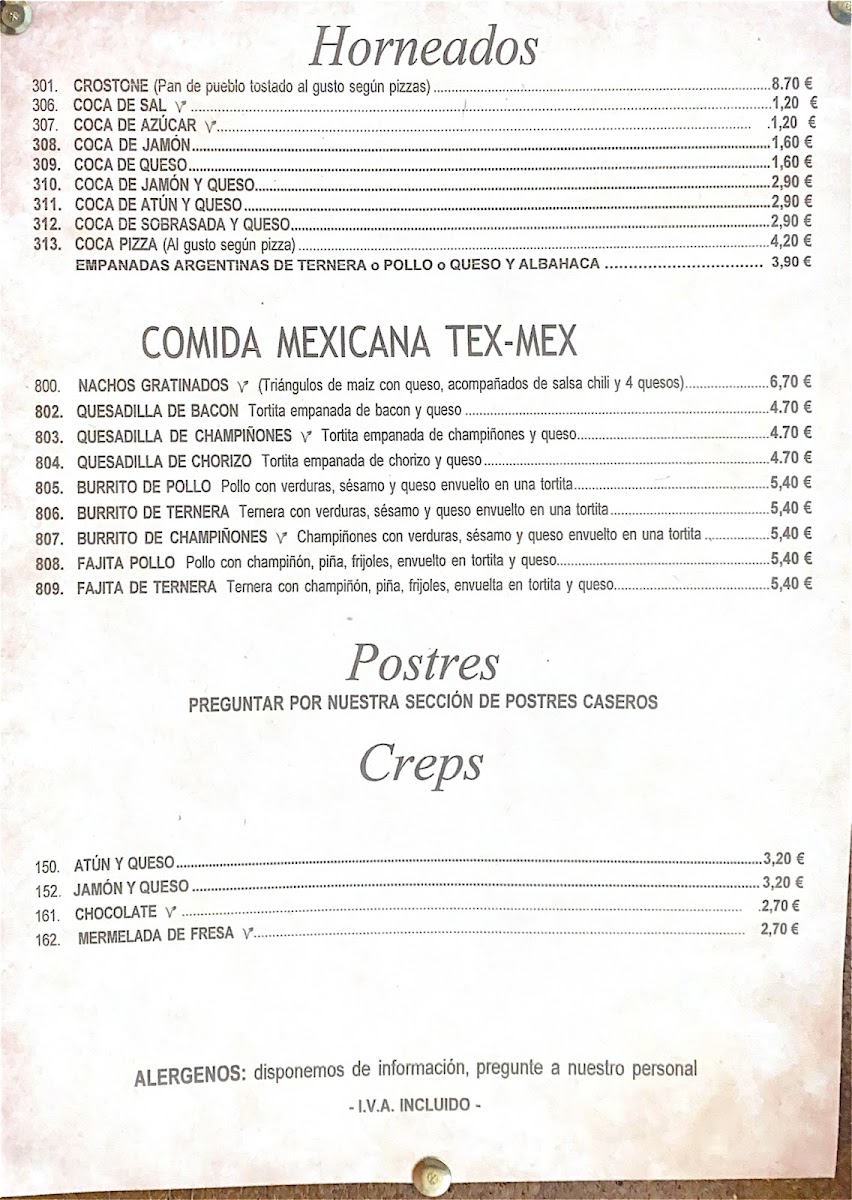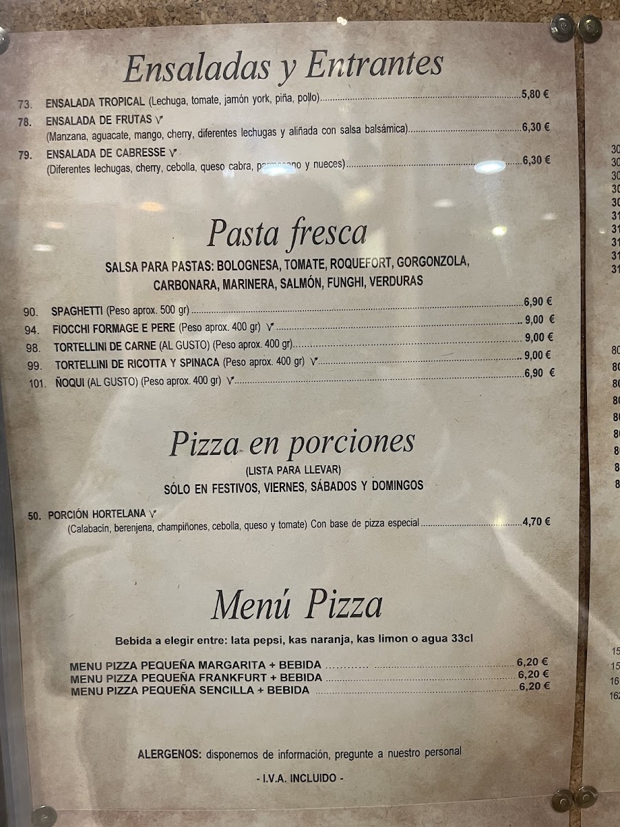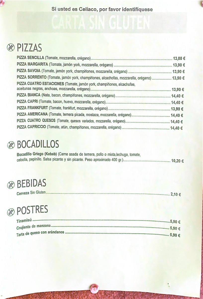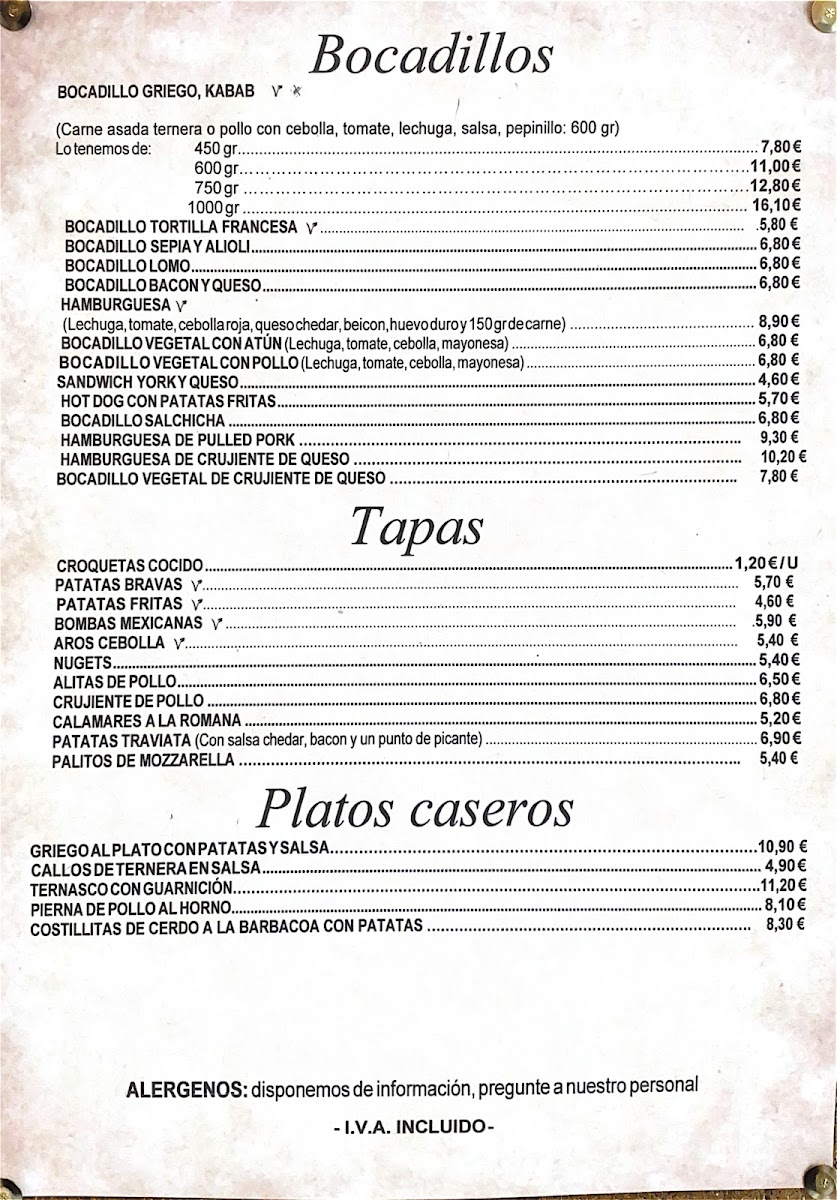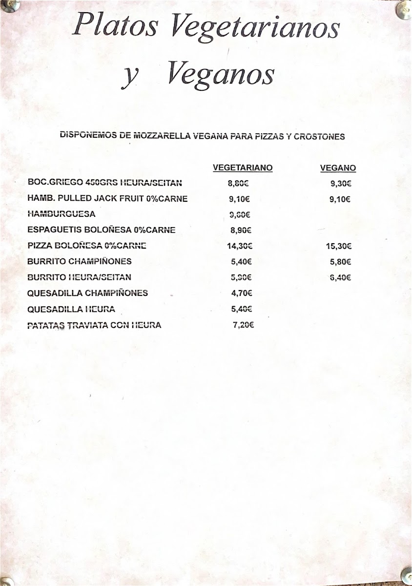 Pizzeria La Traviata offers a wide and varied menu, catering to different tastes and dietary needs. For those craving a substantial meal, the Griego dishes come in various sizes: B. Griego 450 grs, B. Griego 600 grs, B. Griego 750 grs, and B. Griego 1 Kg, with a Menu Griego 350 grs also available. The pizza selection features classic options like Margarita más piña, Pizza Americana, Pizza Barbacoa, and Pizza Bianca. If you're in the mood for something lighter, there are several Bocadillos (sandwiches), including Bocadillo de Lomo, Bocadillo Salchichas con Tomate, and Bocadillo Vegetal Atún, as well as fried delights like Alitas de Pollo and Calamares a la Romana. For a unique twist, the restaurant offers Cocas such as Coca Pizza, Coca de Atún y Queso, and Coca de Jamon y Queso. Gluten-free diners are also catered for with options like SG. Pizza Margarita and SG. Pizza Frankfurt. If you're in the mood for home-style dishes, Callos Ternera, Costillas de Cerdo BBQ, and Pierna de Pollo al Horno con Fritas are some of the standout offerings. The salad section includes refreshing choices like Ensalada Cabrese and Ensalada Tropical. There are also comforting pasta options such as Canelones, Lasaña de Carne, and Spagueti al gusto. For a taste of Mexico, try the Nachos Gratinados or a Quesadilla de Chamiñones. Desserts include sweet Crep de Chocolate and Crep de Nutella, while vegan and vegetarian options like Burrito Heura and Burrito Seitan provide tasty plant-based meals. To accompany your meal, beverages like Acuarius and Cerveza Lata are available, along with refreshing ice creams.